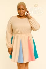 Step into elegance with the Kendra Dress, a stunning color-block mini designed for queens who love style with ease. Crafted from 95% polyester and 5% spandex, this piece feels like a soft chiffon with a smooth, lightweight flow. Though the tag notes a hint of spandex, the dress itself is not stretchy, giving it a structured yet airy silhouette that flatters every curve. The dress is fully lined underneath for coverage and comfort, making it perfect for day-to-night wear. Long sleeves add a touch of sophistication, while the playful pop of color panels brings fresh energy to your look. Details: Material: 95% Polyester, 5% Spandex Chiffon-like fabric with lining underneath Long sleeves, mini length Non-stretch fabric Color-block design for a modern, trendy vibe Fit: True to size Style Tip: Pair with strappy heels for brunch with the girls, or keep it casual with sandals and a clutch for a chic day out.